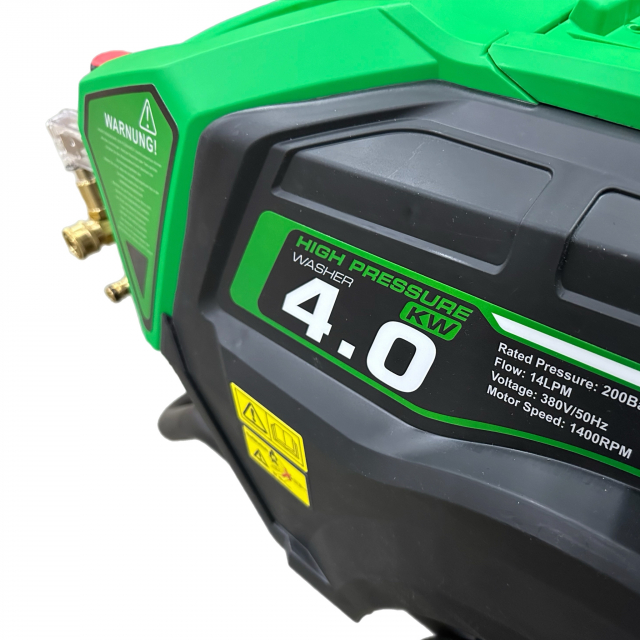 • Zelfaanzuigende pomp met een capaciteit van 200 bar en 14 liter per minuut.